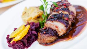 - Jako hlavní chod tohoto hodování samozřejmě zazáří pomalu pečená pečená kachna. Přílohu necháme na vás. Ať už si k ní dáte dušené zelí a kynuté knedlíky nebo chlupaté knedlíky se špekem a cibulkou, uspokojíte všechny mlsné jazýčky.