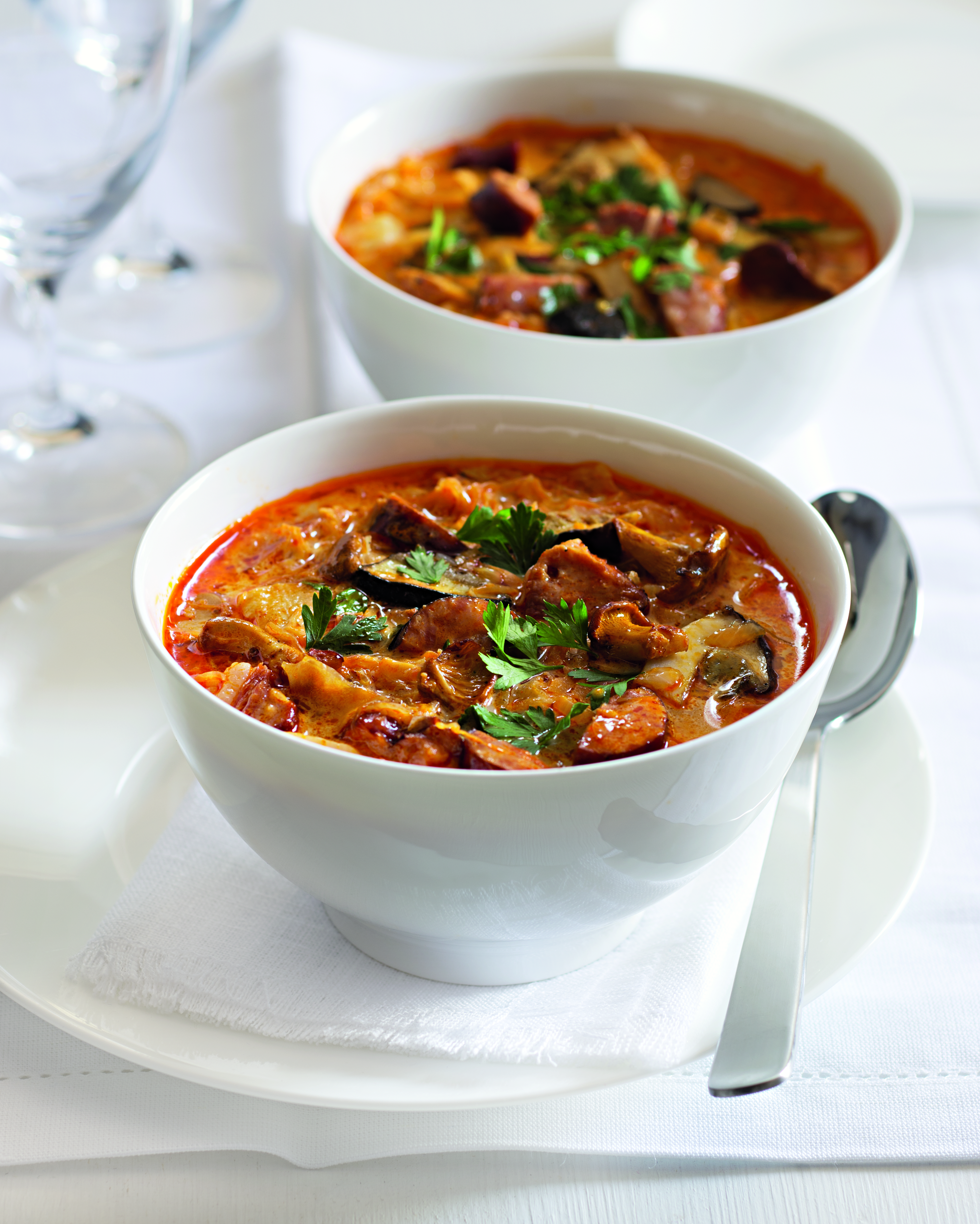 - Zakysaná smetana dodá polévce jemnost. Zvolte tučnější variantu zakysané smetany a přidejte ji do polévky až úplně na závěr – až když je polévka odstavená z plamene.