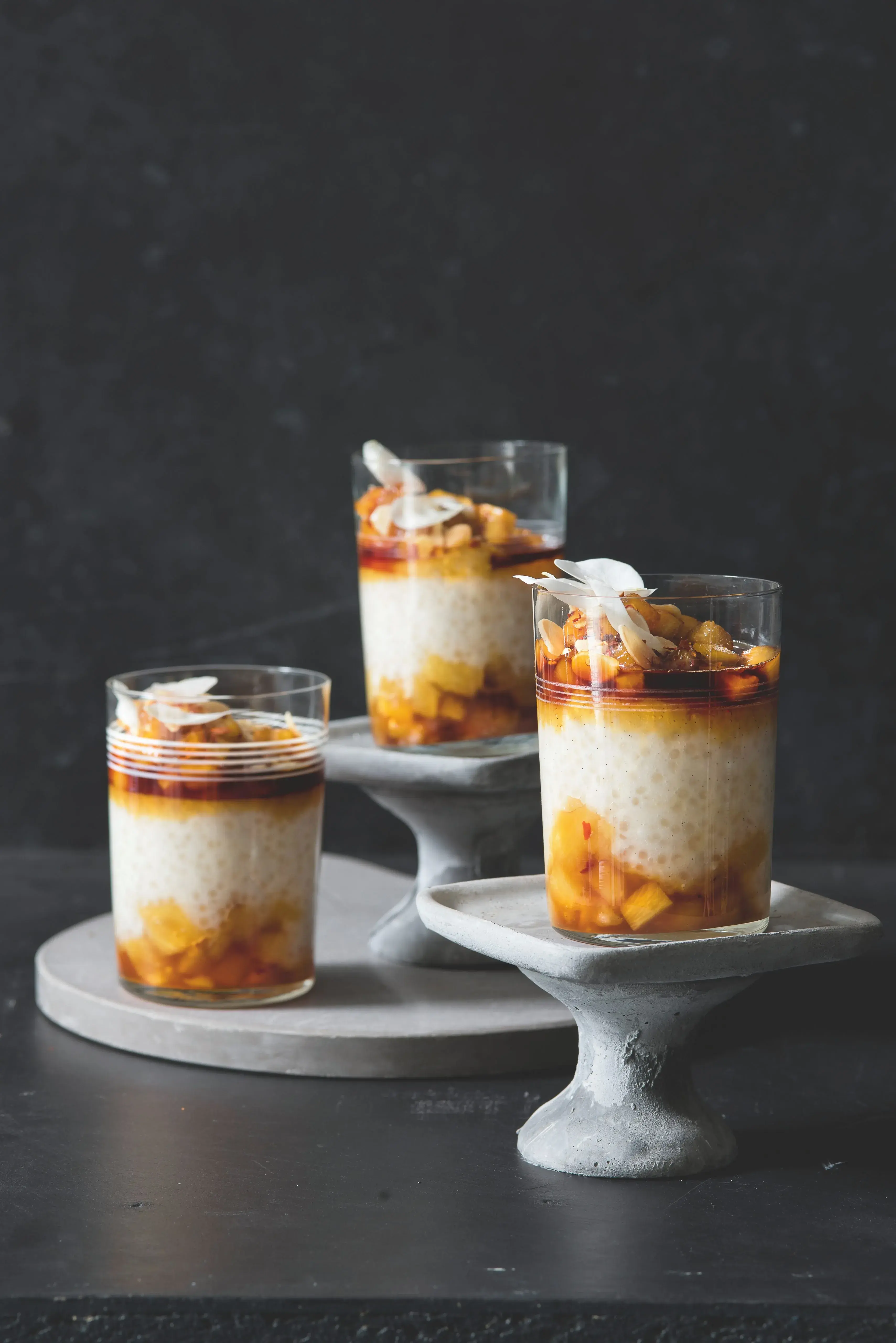 Při přípravě asijských dezertů se neobejdete se bez kokosového mléka, bílé rýže, tapiokových perel a exotického ovoce – ananasu, manga a kokosu. Většinu surovin najdete v hypermarketech, ale pokud chcete, vydejte se na výlet do vietnamské tržnice Sapy!