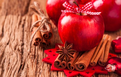 Z pěkného červeného neoloupaného jablka vykrojte dva měsíčky. Do každého zapíchejte řadu hřebíčků a vložte je do připravených skleniček. Přihodit do nich můžete také brusinky nebo rozinky.