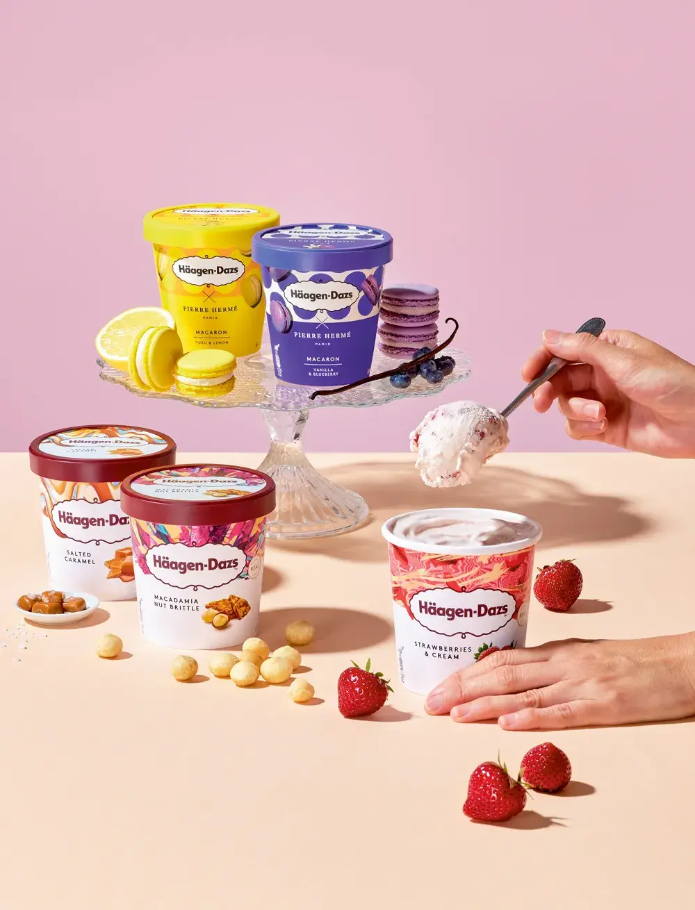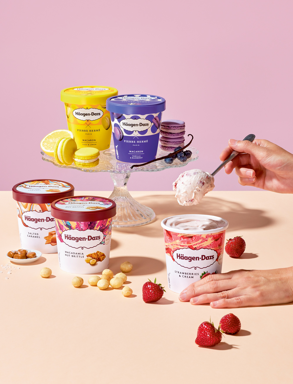Díky tomu mohly vzniknout třeba dvě novinky letošního léta – yuzu a citron s makronkami a vanilka a borůvka s makronkami. Příchuť citron a yuzu je opravdu unikátní, kombinuje sladkost smetany s kyselostí citronu a tečkou je poleva z yuzu, to vše je dovedeno k dokonalosti makronkami od mistra v oboru Pierre Hermé Paris. Vanilková Häagen-Dazs s výtečnými borůvkami a šťavnatým černým rybízem přináší neopakovatelný zážitek z mlsání i díky křupavým borůvkovým minimakronkám.