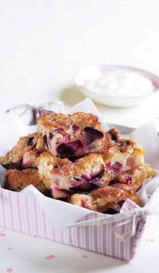 - Kontrastní kombinace – broskve s borůvkami pošírované v karamelu