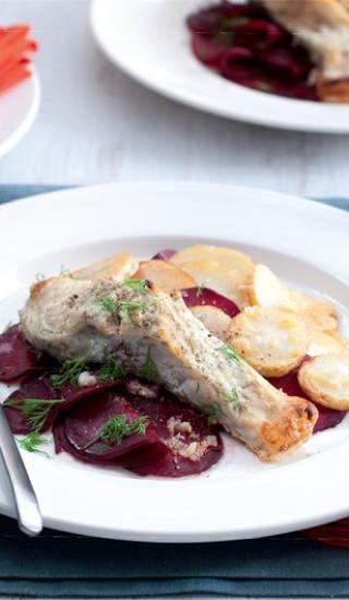Vzniklé tři části naporcujte. Na straně, kde byla kůže, lehce nařízněte. U porcí z horní části a od ocasu udělejte zářezy hlubší a překrojte malé ‚Y‘ kosti.