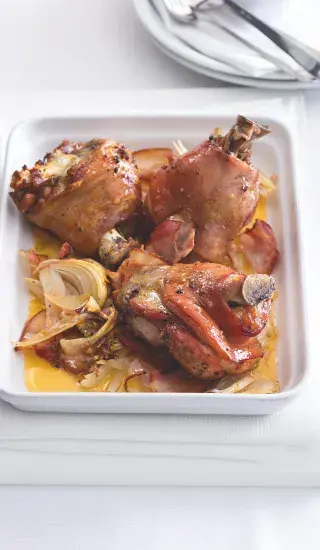 „Koleno je nejlepší maso z prasete,“ říká šéfkuchař Václav Frič. Asi ne každý souhlasí, ale pravda je, že kůže při tepelné přípravě pěkně chrání maso, které je navíc bohatě prorostlé kolagenem, a tudíž je výsledek na talíři superšťavnatý.