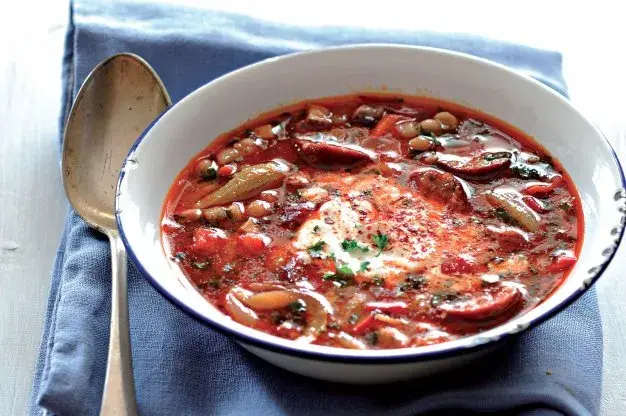 Pokud milujete poctivé guláše, vydatná fazolová polévka s uzeným kuřetem vás nezklame. Kombinace rajčat, papriky a pikantní klobásky se zkrátka nikdy nepřejí.