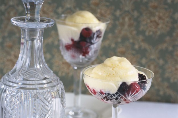 Zabaglione s ovocem, sušenkami nebo riccotou