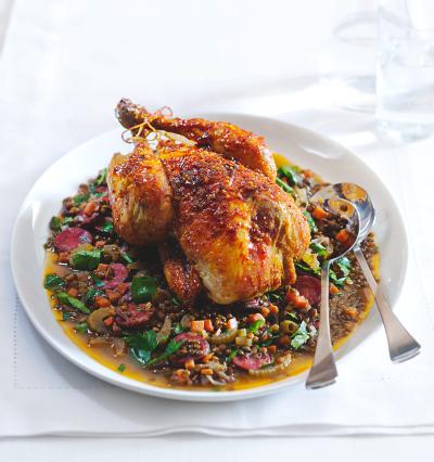 - Jako kuře… Upečte perličku jako kuře. Osolte ji, opepřete a do břišní dutiny dejte celý propíchaný citron. Promíchejte pokrájené brambory, pórek a mrkev s hrubozrnnou hořčicí, citronovou kůrou a olivovým olejem. Zeleninu upečte spolu s perličkou.