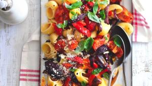 Tenhle recept funguje pokaždé, když máte doma nějakou zeleninu a nevíte, co s ní. Nakrájejte ji na větší kousky (mrkev, cuketu, papriku, brokolici…), dejte na plech, osolte, opepřete, pokapejte olejem a nechte péct dozlatova. Pak jen smíchejte s těstovinami a zasypte sýrem. A pokud chcete posunout chuť ještě o level výš, přidejte pár kapek citronové šťávy nebo balzamikového octa.