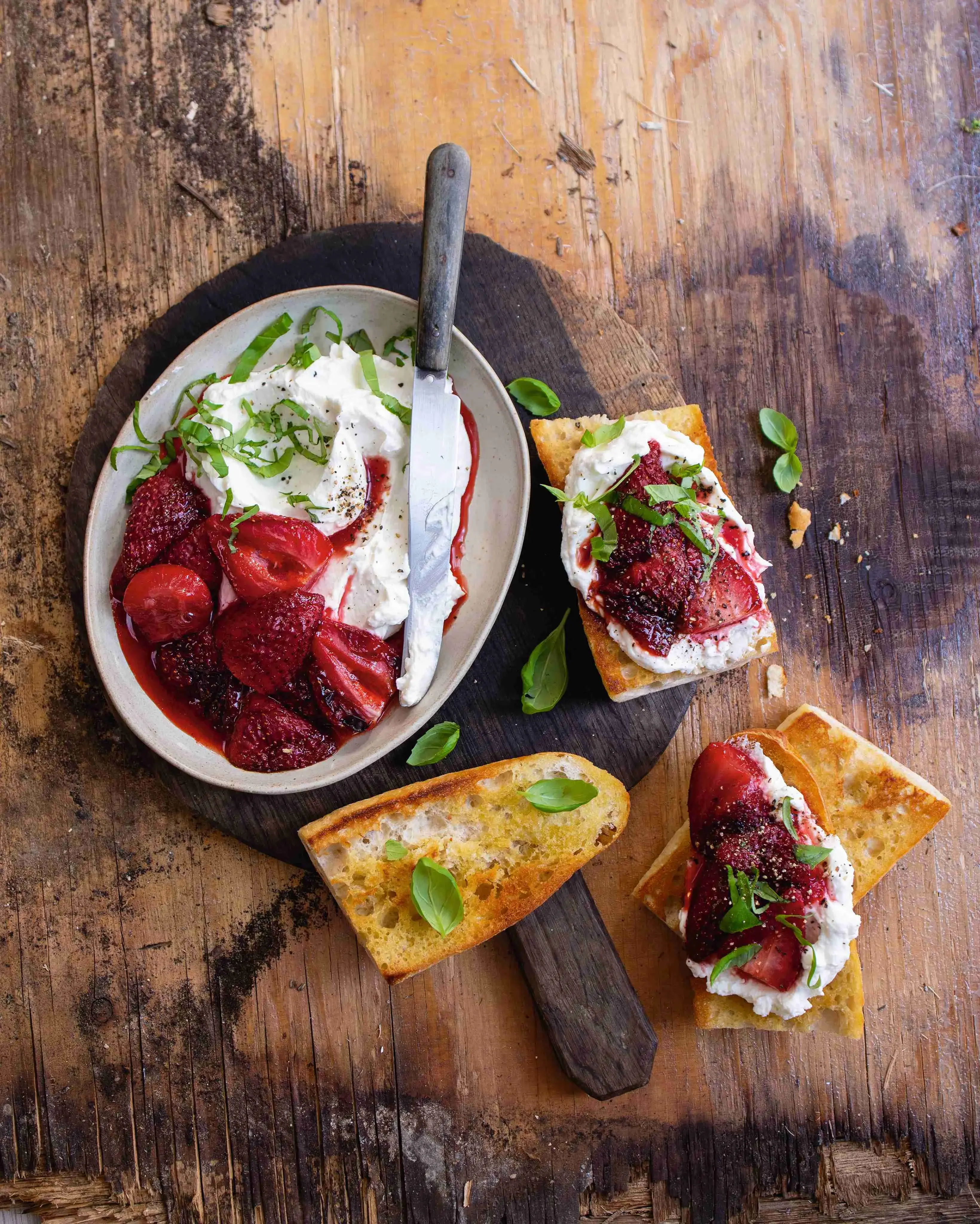 Crostini, tedy italská obdoba topinek, jsou hotové během chvilky a přitom vypadají efektně. Feta našlehaná s krémovým sýrem vytvoří hladký základ, který se krásně spojí s pečenými jahodami. Ty v troubě zesládnou, zkaramelizují a v kombinaci s aromatickou bazalkou a čerstvě mletým pepřem vytvoří chuť, která překvapí. Fungují skvěle jako malá večeře i jako pohoštění ke sklence vína.