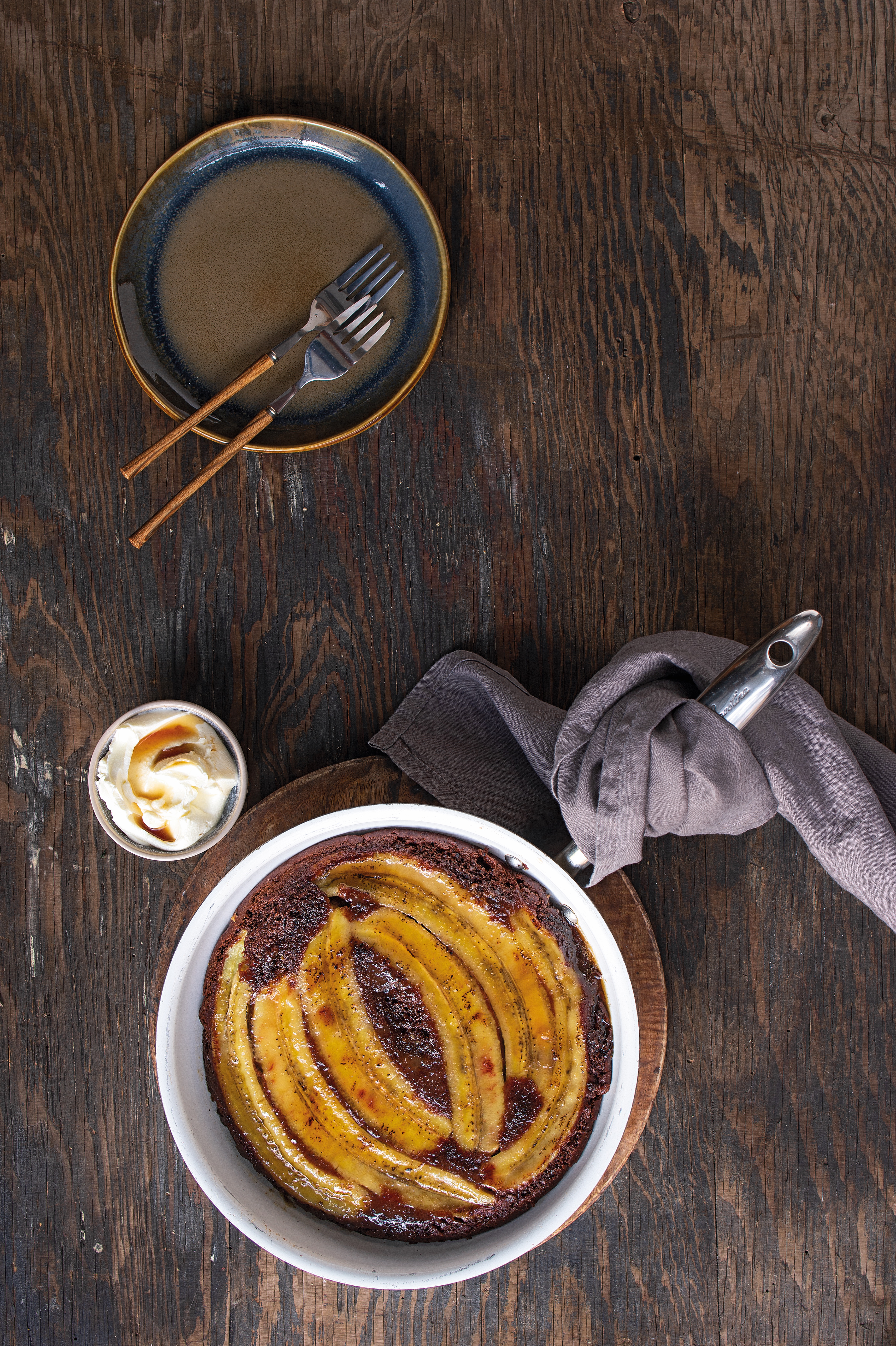 Obrácený banánový koláč z pánve
