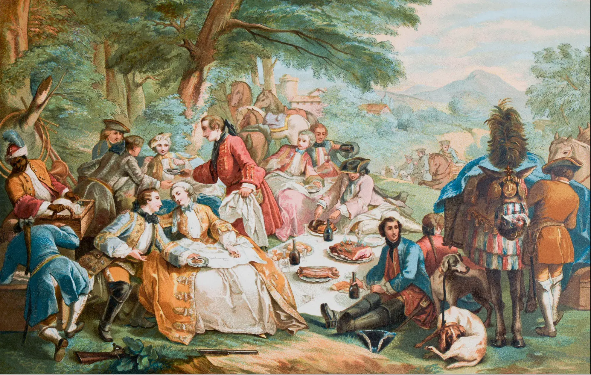 - U vyšších vrstev se stoly prohýbaly pod pečeným selátkem v celku.