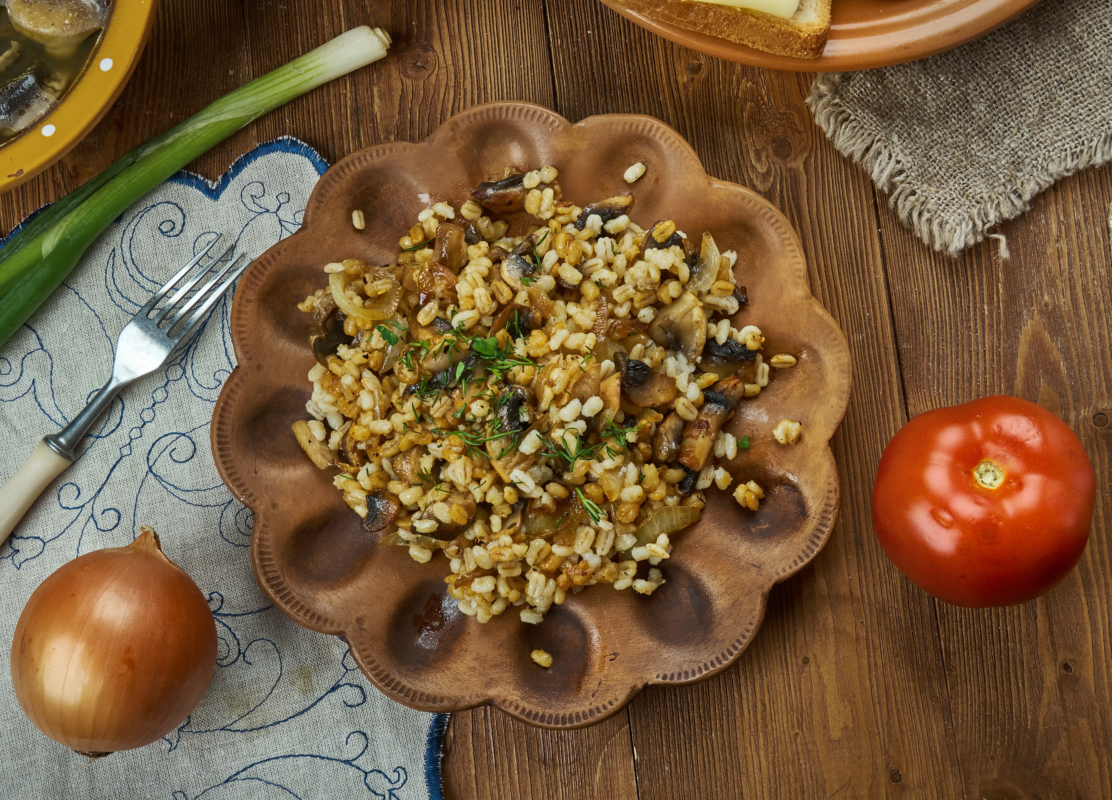 - Správná konzistence je uvnitř krémová, na povrchu lehce křupavá. Kroupy proto nepřevařte, v troubě ještě trochu dojdou. Pro krémovější výsledek se nebojte do směsi přidat trochu vývaru nebo vody z hub. Chuť krásně zjemní a zakulatí kousek másla vmíchaný na závěr.