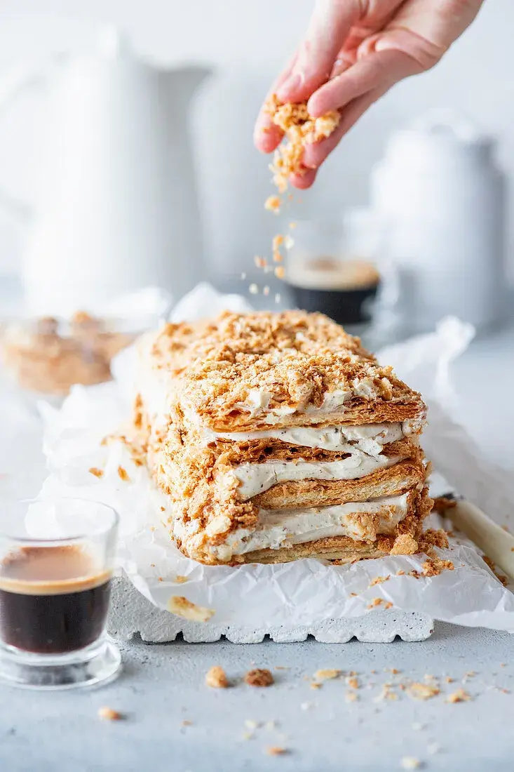 Millefeuille je tradiční francouzský dezert a v překladu znamená „tisíc plátků“. Hned na první pohled je jasné, že svůj název získal podle struktury, kterou tvoří lískové těsto.