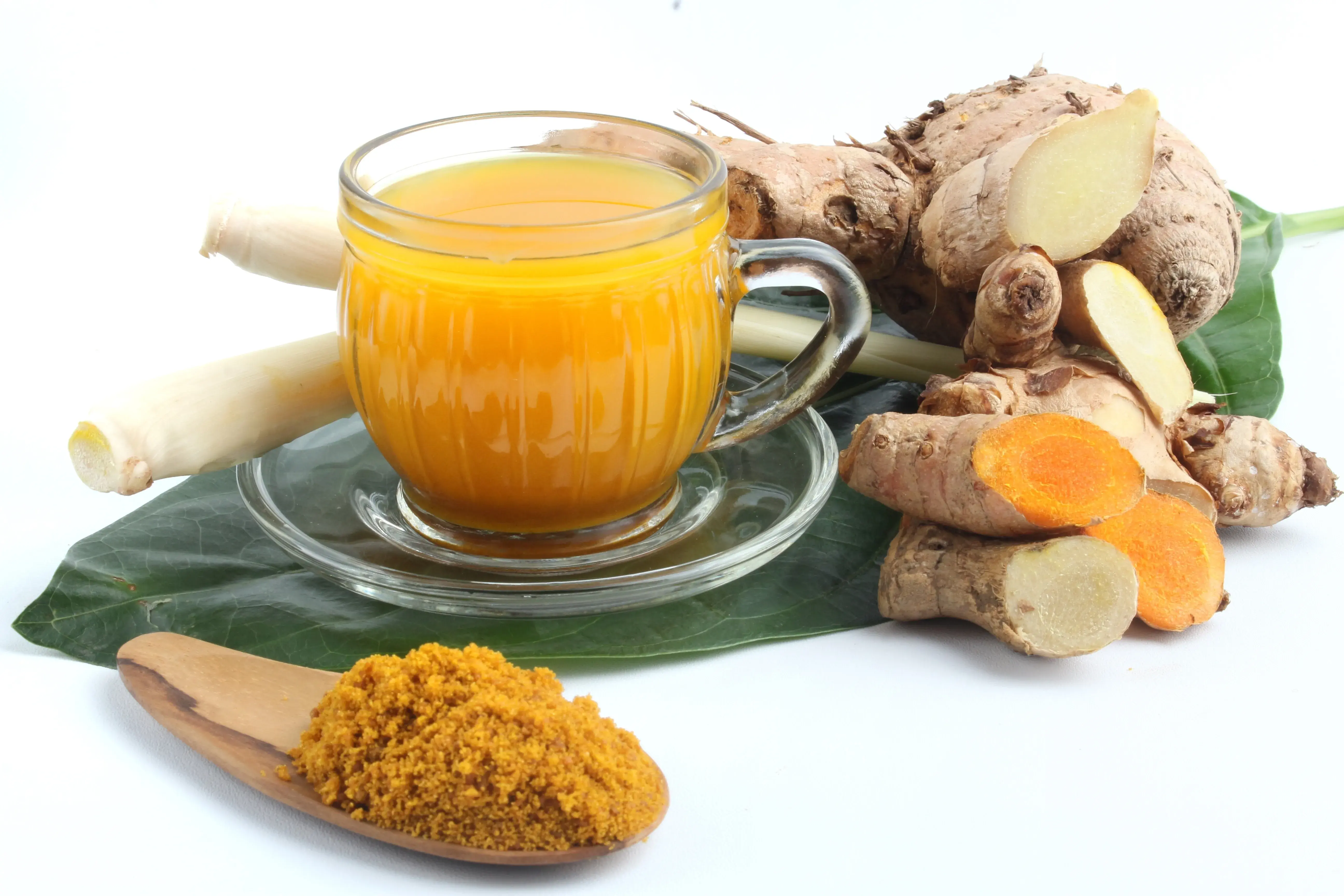 Budete potřebovat: 1 lžičku mleté kurkumy, 1 nastrouhaný či nadrobno nakrájený plátek čerstvého zázvoru, med a citronovou šťávu dle chuti