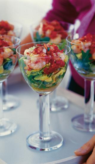 - Pokud jde o původ, hlásí se k němu Britové. Vymyslet ho měla tamní kritička restaurací a televizní postava 50. až 70. let Fanny Cradock, pověstná svým hrubým vystupováním a silnou vrstvou make-upu. Obdivovala Augusta Escoffiera, s nímž prý může být krevetový koktejl také nějak spojený.