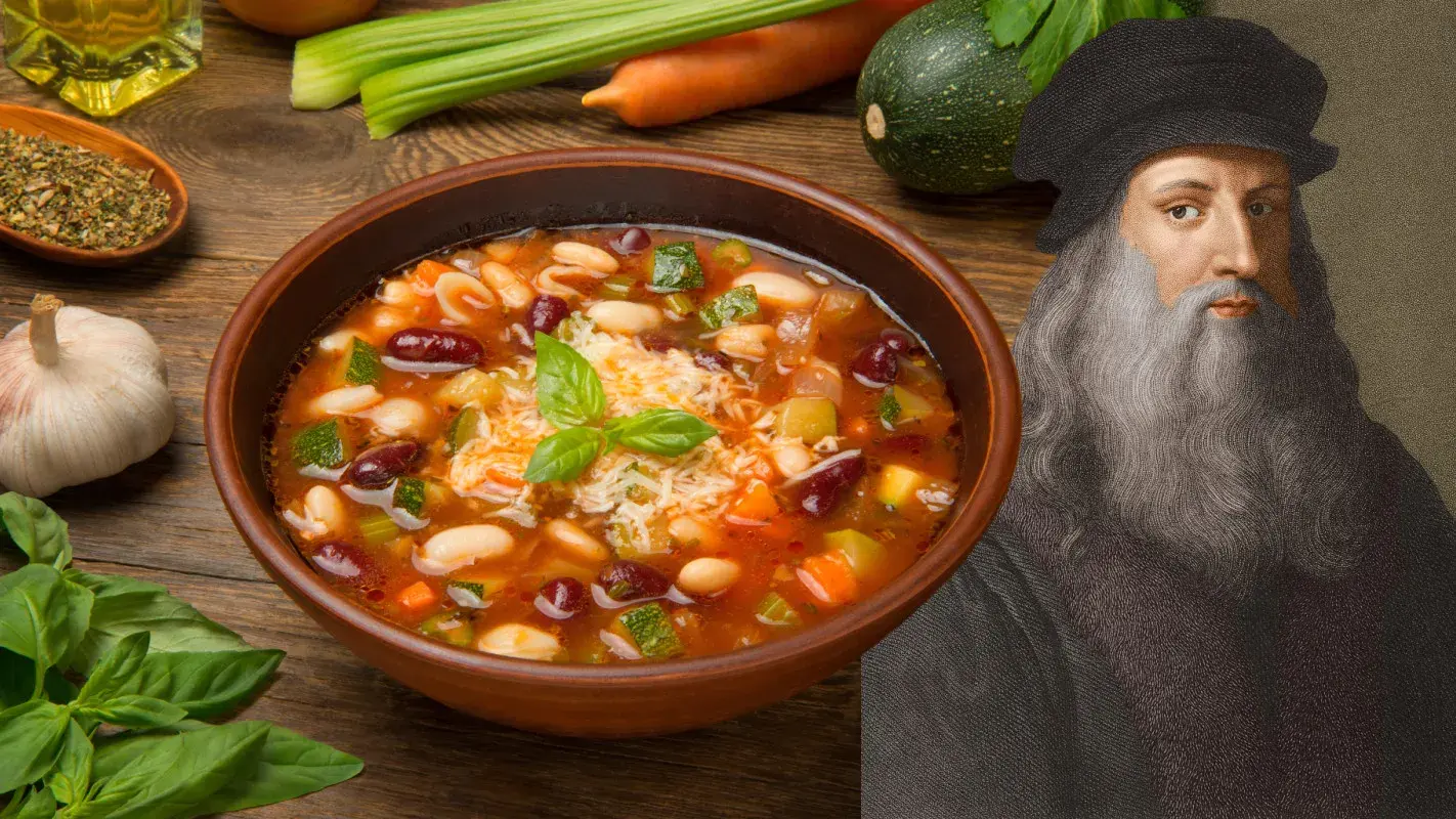 V některých zdrojích najdete informaci, že Leonardo da Vinci skoro denně obědval polévku minestrone. Nebylo by na tom nic divného, kdyby běžnou součástí této kulinární delikatesy nebyla rajčata. Některé zdroje sice uvádějí, že se rajská jablíčka do Evropy dostala už s Kolumbem roku 1498, ale i kdyby to byla pravda, trvalo by několik let, než by se daná surovina stala běžně používanou. Navíc jiné zdroje říkají, že rajčata do Evropy přivezl až Cortéz roku 1521. Ať už je pravda kdekoli, víme, že polévku podobnou minestrone vařili již starověcí Římané. Je tedy možné, že variantu na ni da Vinci skutečně jedl skoro denně.