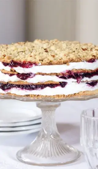 - Vrstvení zakončete světlým korpusem a rumovým sirupem. Dort můžete ještě posypat drcenými ořechy a kakaem.