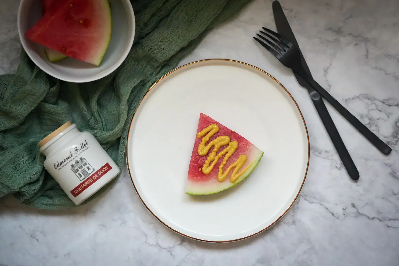 Možná to překvapí, ale kombinace sladkého a slaného má v gastronomii pevné místo – jen jsme si u melounu zvykli na sýr. Klíčem k úspěchu je výběr hořčice. Netlačit na pilu. Použijte kvalitní, jemnou dijonskou hořčici a zkuste jen lehce potřít jeden plátek.