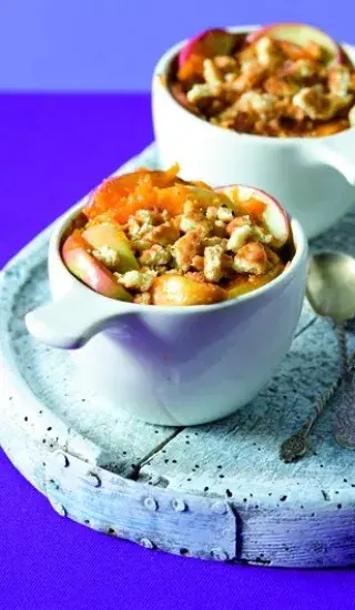 Vykrojte jádřinec, nasypte dovnitř rozinky se skořicí, přidejte oříškovou drobenku. Během chvíle máte dezert, který vypadá, jako byste si s ním dali opravdu hodně práce. Přitom je hotový raz dva.