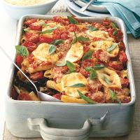 - Pečte na 200 °C 30-40 minut. Mezitím uvařte libovolné těstoviny, do kterých poté zamíchejte vidličkou rozmačkanou fetu a rajčata.