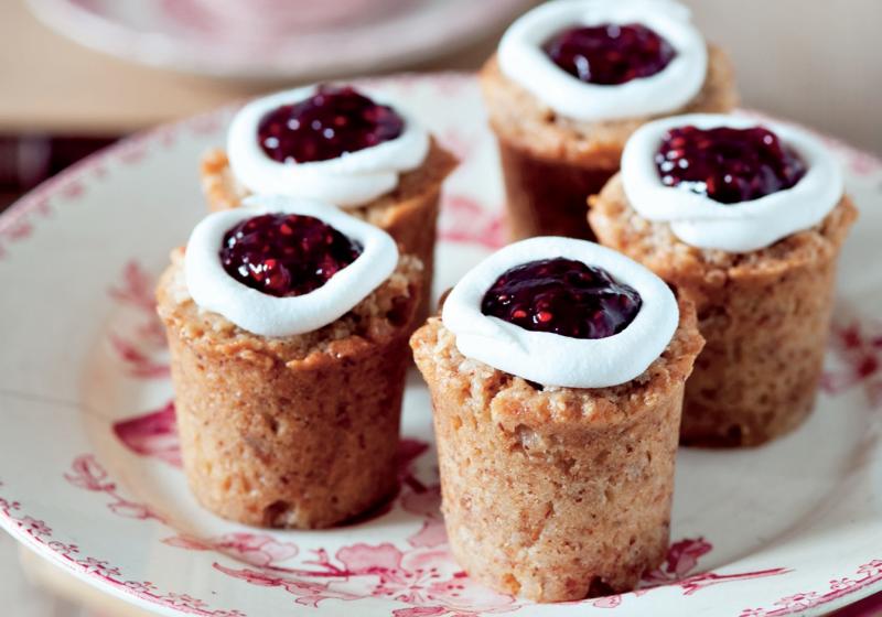 Zdobení: Dort se peče ve speciálních malých válcových formičkách, ale použít můžete i formičky na muffiny. Po upečení se vršek zdobí lžící malinové marmelády a prstencem z cukrové polevy.