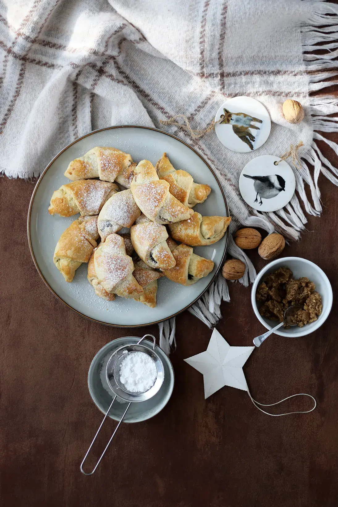 Vyzkoušet můžete i jednoduchý recept s máslem a kypřícím práškem. A naplňte si je dle chuti – ořechovou nebo makovou náplní. „My se doma nikdy nedokážeme rozhodnout, kterou náplň máme nejraději. Tradice velí použít tu z vlašských ořechů, ale my tak moc milujeme mák! A tak ho cpeme všude,“ říkají Jana a Štěpán.