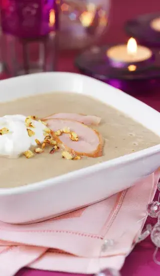 - Kaštany mají přirozeně jemnou a nasládlou chuť. Pyré z nich koupíte hotové – chlazené, mražené nebo ve skle. Hodí se nejen do sladkostí, ale i k masu. V tomhle receptu ale hrají hlavní roli, a díky kontrastu se slaným karamelem a oříšky si je zamilují i ti, kdo je doteď přehlíželi.