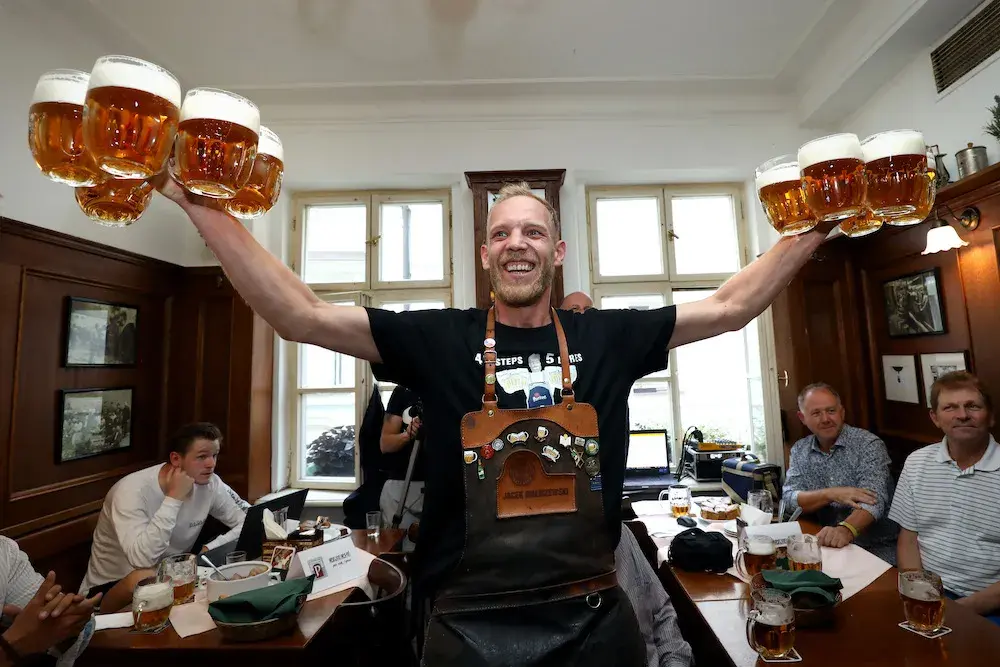 - To se běželo stejně jako za starých časů s deseti vlastnoručně načepovanými velkými pivy ze sklepa do prvního patra pražské restaurace.