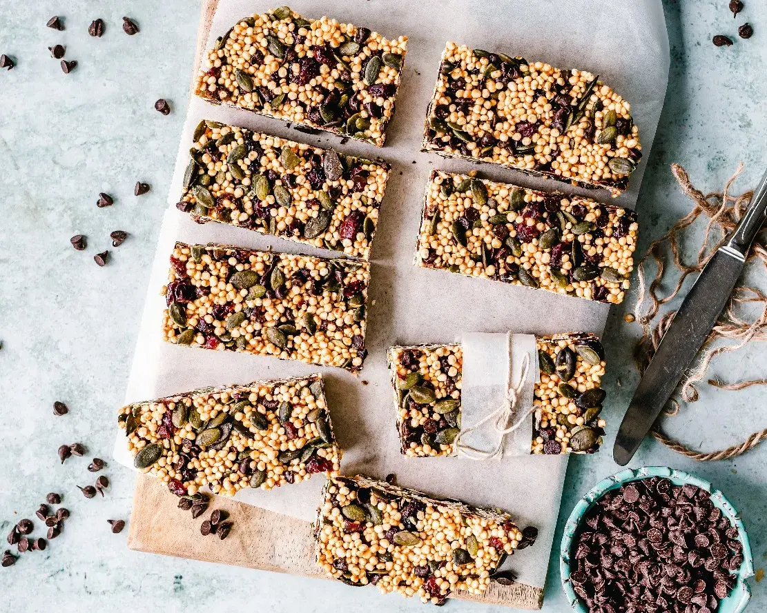 - Proteinové tyčinky. Připravte si domácí müsli tyčinky s ořechy, semínky a sušeným ovocem, které skvěle dodají energii a doplní potřebné bílkoviny.